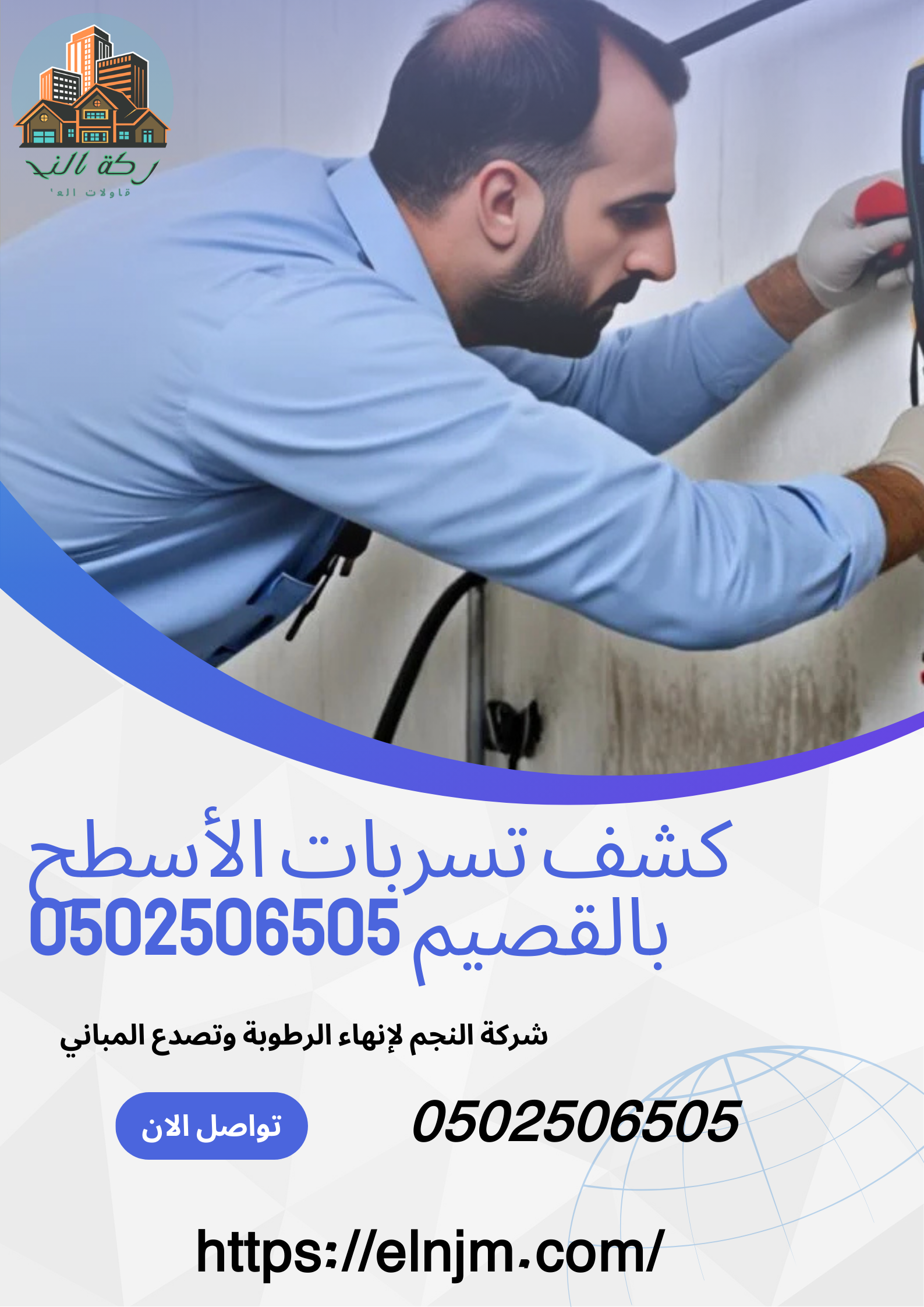 القسم 9: شركة النجم وتغطية شاملة لمدن بريدة وعنيزة والرس في كشف تسربات الأسطح بالقصيم 0502506505